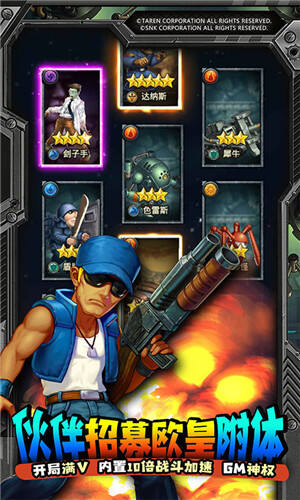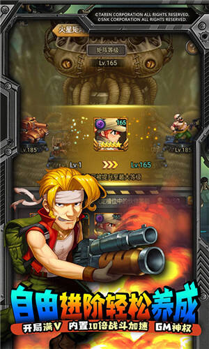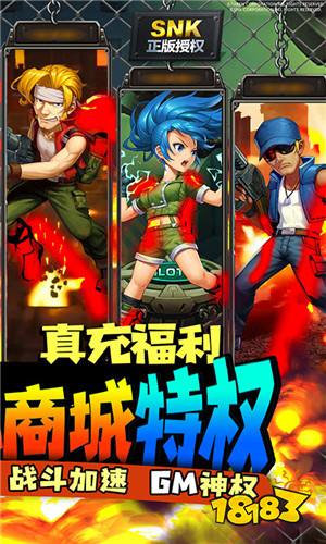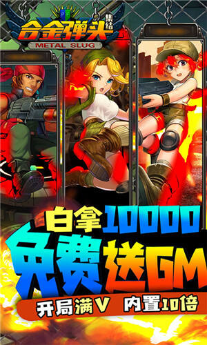 SNK正版授权的放置手游合金弹头无限元宝版上线啦,来玩就送GM特权万元充!阵容属性,灵活变换,从容面对各种敌人!放置玩法,挂机升级,游戏时间由你掌控,不当合金工具人!共享等级,一键重生,从此不再为阵容劳心费神!这里有丰富的合金角色,甚至连小兵都能培养,只有你想不到的,没有你抽不到的!这里有你没听过的合金故事,大反派莫顿的过往,会波动拳的俘虏老头的真实身份等你来一探究竟!这里还有我们对合金弹头永远不变的热爱和激情,少年,行动开始了,快来召集你的合金伙伴,加入我们的征伐队伍中吧!