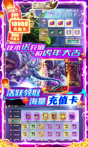 ★每周登录/在线领送周卡;每日活跃赠送15元充值卡;每周活跃赠送100元充值卡!
