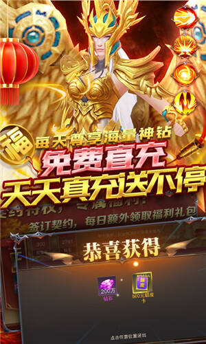 ★GM武器开局就送,助力打金更便捷,签订契约特权每天至少免费送500元真充额度,每天签到还能无限抽真充!