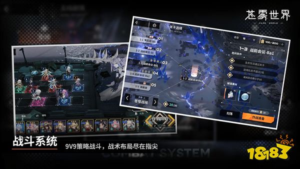 采用战术战棋玩法,9V9布阵系统结合角色技能联动(如“原罪之拳”击杀回血触发“双星华尔兹”追击),强调地形利用与连携机制。