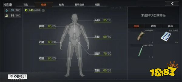 3、在暗区突围中,药品和身体构造分别有哪些?
