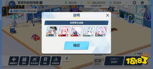 课程表:根据材料和好感度(厨力)的需求安排学生的课程来获得好感度、技能升级材料和碎片(均为概率获得)。