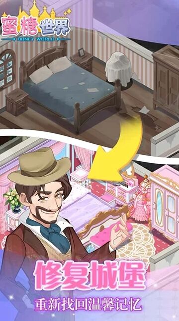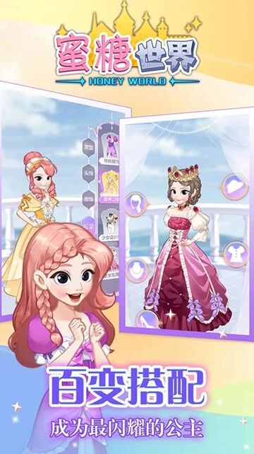 2. 画面采用萌系手绘风格,色彩搭配清新柔和,蜜糖色为主色调,搭配粉蓝、浅紫等梦幻色彩,城堡建筑、公主服饰、装饰道具都极具细节感,每一处设计都透着甜美元气,视觉体验十分治愈。