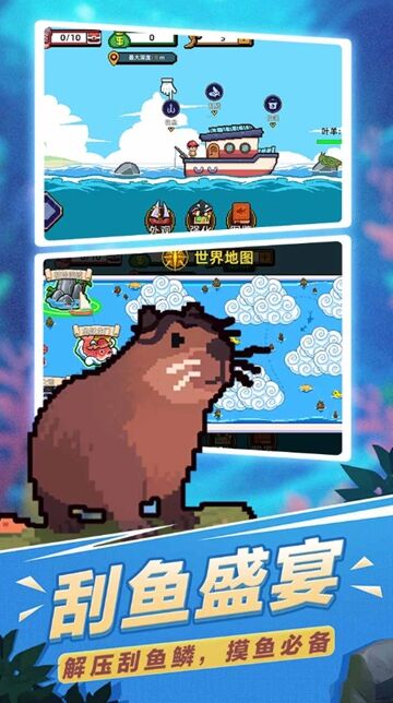 2. 无氪金压力,游戏内所有道具与海域均可通过玩法解锁,金币可用于升级渔具,提升钓鱼与刮鳞效率,公平性拉满,适合各类玩家长期体验。