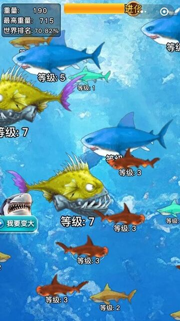 1. 差异化进化体系,每只鲨鱼都有专属成长路径,除基础体型增幅外,解锁速度、咬合力、防御等个性化天赋,高阶鲨鱼更可激活专属技能,如隐身突袭、范围吞噬等,适配不同竞技策略。