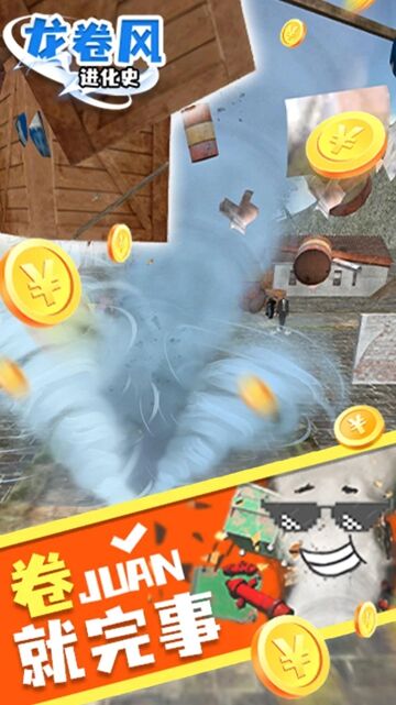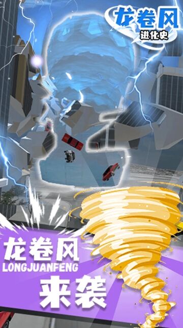 1. 核心玩法围绕龙卷风进化与城市破坏展开,玩家初始操控一缕小型旋风,通过吞噬场景内物体积累进化能量,等级提升后龙卷风体积、范围与破坏力同步增长,最终可成长为能摧毁摩天大楼的超级风暴。