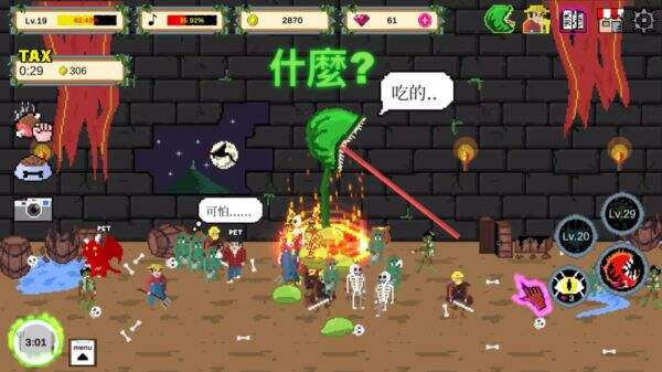 2. 经典像素画风与魔性音效搭配:游戏采用精致的手工绘制像素图案,画面复古讨喜。搭配上猎物被吞噬时发出的逼真惊叫声,营造出既搞笑又充满沉浸感的独特氛围。