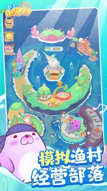 2. 部落经营玩法:通过出售垂钓获得的海产获取金币,用于搭建渔具店、海鲜餐厅、民宿等特色建筑,升级建筑可提升村落收益,解锁更多部落装饰风格。