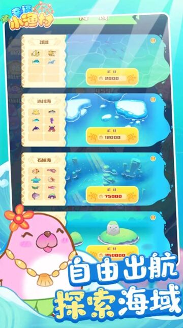 3. 探险探索玩法:组建探险小队,携带渔具和防护道具前往未知海域,探索神秘岛屿,收集稀缺资源的同时,完成守护家园的任务,解锁新的垂钓区域。