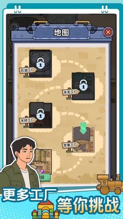 1. 五大主题工厂解锁:从基础的农产品小作坊起步,逐步解锁苹果工厂、木材工厂、羊毛工厂直至石油工业巨头,体验横跨五大领域的产业扩张之路。