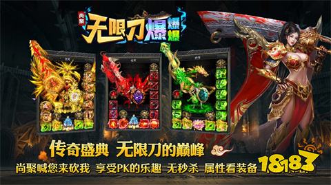 尚聚无限刀爆爆爆特色玩法多样,神龙之心提供独特的龙魂护体,人人可当砍王,免氪即可到顶级。上古神兵拥有强大的属性和无双的 BUFF,等待属于它的有缘人。材料体系方面,本服所有材料均有怪物产出,作用明确,来源清晰。装备类别从普通装到超神装,人物主要的属性来源,全靠打靠爆,得一件神装便当大哥。