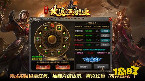 千钧攻速三职业是一款经典复古传奇手游,完美平衡战道法三职业,支持玩家随时自由转职。游戏主打装备全靠打,零氪玩家也能轻松毕业,所有装备材料均可通过打怪获得,拒绝装备合成套路。散人玩家可通过招财进宝任务获取大量真充红包与充值货币,装备永久回收非绑定充值货币,保值率高。无论是 PK 爆发还是打宝升级,这里都能满足你的需求,快来体验这个公平竞技的传奇世界,感受热血攻速带来的无限乐趣。游戏内活动丰富,激情不断,是散人打宝的首选服。