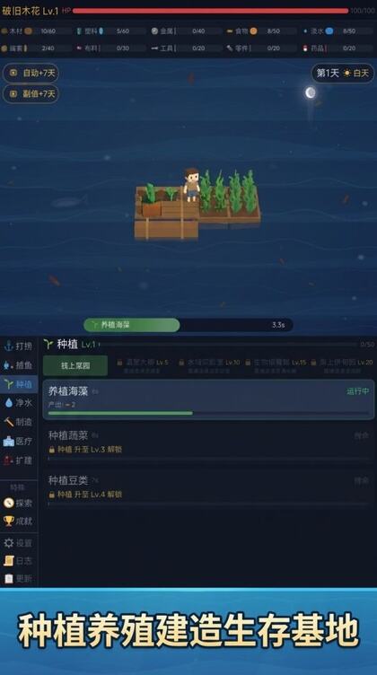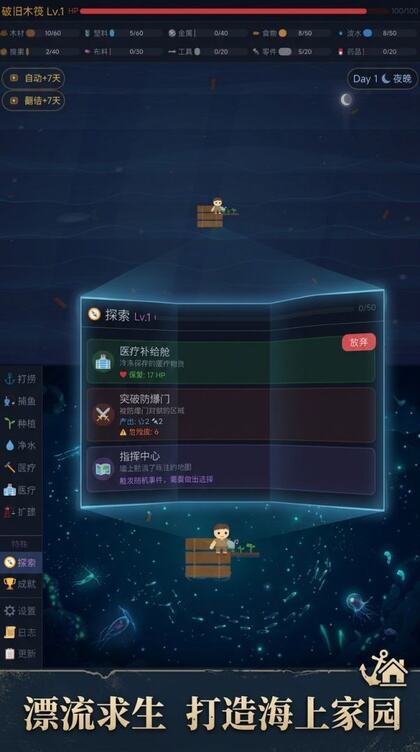3. 资源循环管理:食物、淡水、材料等资源都需要玩家通过打捞、钓鱼、净化等方式获取,合理的资源分配与储存是生存的关键。