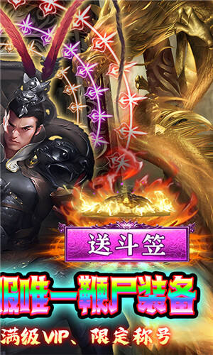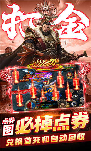 烈火一刀魂环打金服手游上线送满级VIP、神赵云体验时装*1、限定称号*1、元宝*50万。送灵阶斗笠,全服唯一鞭尸装备,鞭尸触发无限大爆。送十年魂环,全新魂环系统,魂环加成逆天伤害。爆率超高,传说BOSS必爆大米,充值全靠爆!点券地图必爆点券道具,可以兑换首充和自动回收。