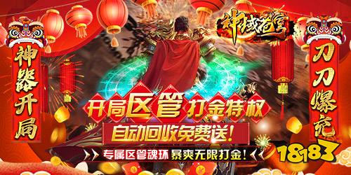 神域苍穹区管刷充魂环版年度盛典新春版本,全新地图、全新福利、全新专属区管特权,助力霸区暴爽打金!上线送区管魂环+万元充值卡+专属区管号!全图爆真实充值,开局爆满背包红包+元宝,区管打金特权、自动回收特权免费送,满福利开局,刀刀爆充!开局开砍,新年暴爽打金!!