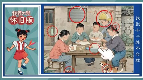 重点关注老照片中的“违和点”,比如旧教室出现的现代贴纸、老街道上的彩色气球,这类与场景风格不符的物品,往往就是要找的目标。