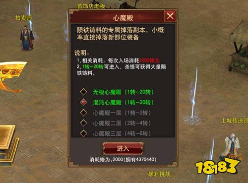 心魔殿是本次《最传奇》8月新版本中新加入的一张地图,玩家可以通过位于盟重土城的对应传送员进入。但由于本地图的特殊性,进入还需要消耗一定的修为值,近期想要集中提高转生等级的兄弟就要慎选了!