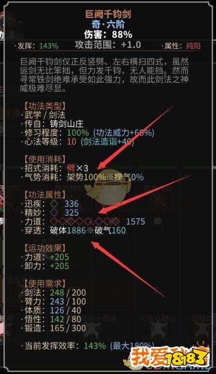 功法属性对应的就是迅疾、精妙、力道分别能造成伤害的比例(下图第二个箭头)
