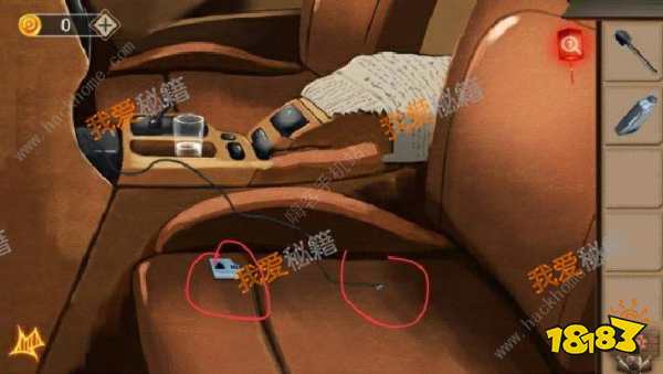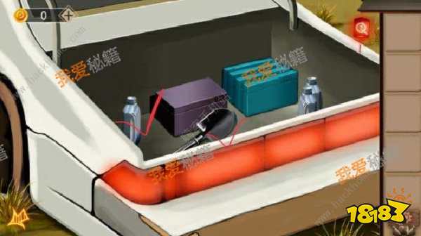 后备箱有一个铲子,一瓶可拿走的机油和两个带密码的箱子。