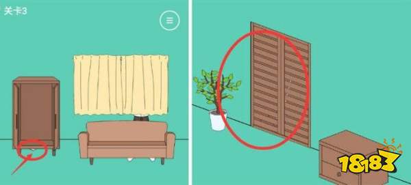 2、关卡2:手机在柜子上,但是够不到,需要一把凳子,凳子在衣橱门后面,将凳子拿过来踩到凳子上即可拿到手机。