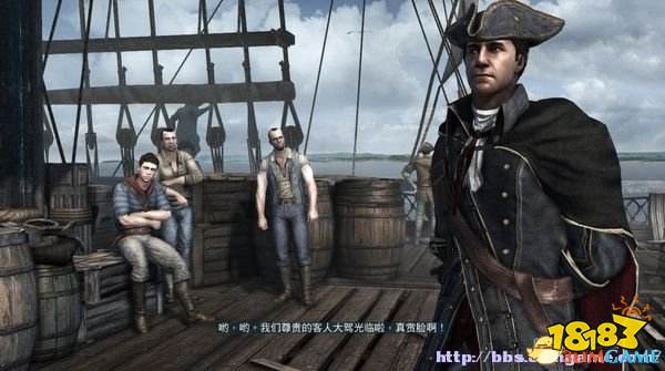 大西洋的商船天命号上,海尔森写完笔记离开船舱。在甲板上见到船长,这家伙对海尔森并不是很热情,唏落了几句就离开了。往前走遇到几名船员,这里熟悉下格斗技巧,经常用的是格挡反击,当对手格挡姿势时按空格键来破坏防御。
