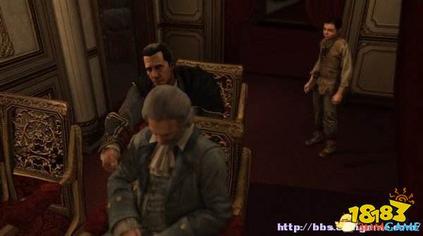 本任务扮演的角色是海尔森,一位举止优雅的贵族,来到伦敦皇家剧院观看演出。找座位坐下,和邻座雷吉纳尔多交谈,按V键激活鹰眼视觉,找到刺杀目标的位置,在右边三层的贵宾包厢。