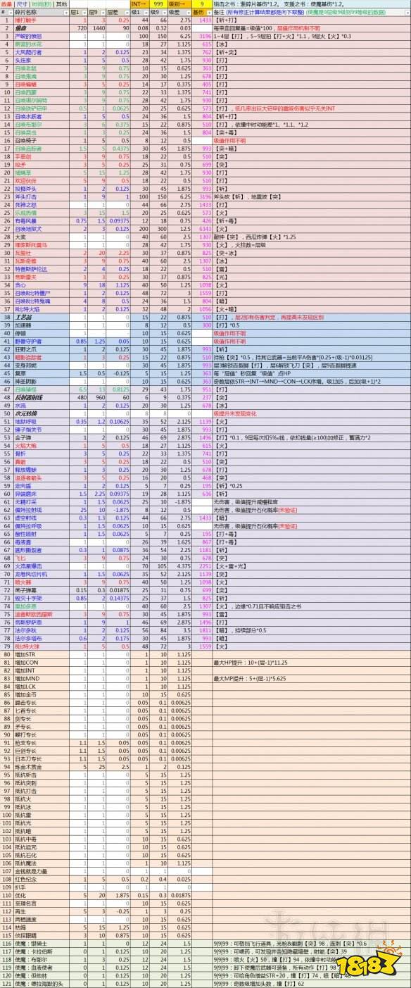 但还有一部分层值自始至终不发挥作用(就是那些层差为0的部分),而实际上游戏里强化层级是有效果的,这说明在游戏文件里对这些碎片的层级调整参量是存放在其它地址的,目前我尚未找到,欢迎其它吧友补充。在本表中受此影响的主要是大部分黄碎片,以及少量其它颜色碎片。