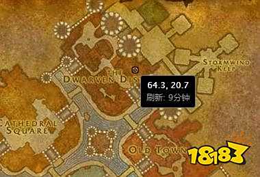 交任务的NPC【布罗哈恩·铁桶】在暴风城的矮人区,坐标(64.3,20.7),具体位置如图。