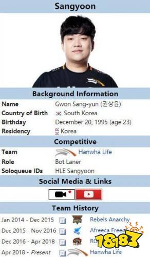 提到HLE战队的ADC选手Sangyoon,也有不少高光时刻。他是LCK的老选手了,此前也担任过ROX、AF、HLE等战队的ADC选手。