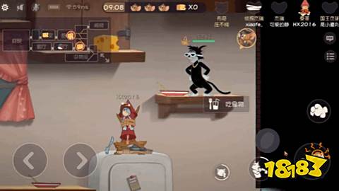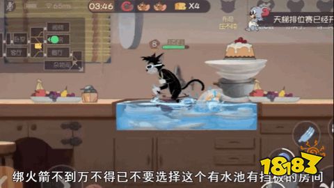 首先还是我们前面讲过的关门,可以预防老鼠的队友在隐身状态下不知不觉把人救走。关完门把老鼠绑上火箭后,其他老鼠还没来可以吃个旁边的食物给自己加buff。