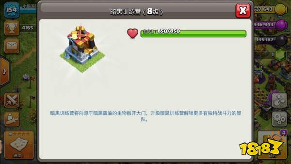 该训练营训练的兵种需要用到暗黑重油。比如野猪,女巫等,七本就可以解锁,部分黑油兵可以和圣水兵搭配出不错的效果(比如前面说的狗球,熔岩猎犬和气球兵的组合),就拿九本来看,虽然龙流什么的勉强可以玩玩,但未必就能把把全平,解锁了熔岩猎犬有着不错的容错率。