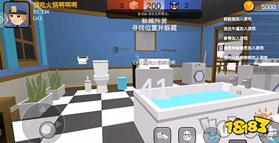 在游戏中,存在两个阵营:寻找与躲藏,比例是6v18。
