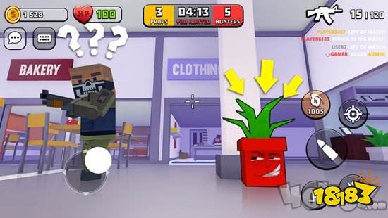 而寻找者,可以点击任何自己觉得可疑的地方来寻找躲藏者,并可手持武器抓捕,或使用枪击道具远程抓捕。