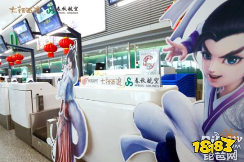 从玩家进入机场、领取登机牌到托运行李,身旁便有许多熟悉的游戏角色立牌,航班内部装饰也是满满的大话X春秋航空元素。