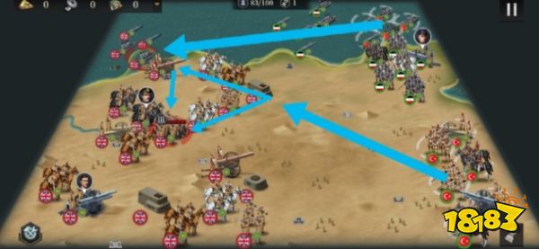 两骑兵和轻机枪去下方快速怼掉野战炮将领,随后清理杂鱼赶去支援中间红圈,主要掩护炮将;守住红圈就行。