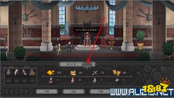 游戏玩法非常简单,点击王座可以坐下,之后就可以处理大小事务了,也可以直接点击NPC进行对话,但是这样无法议事。如下图箭头所指,点击这里进入每周结算界面,这里可以查看各种收入支出,注意,兵力越多,需要维护军费的物资也就越多。