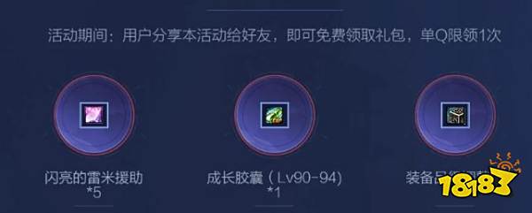 活动期间:用户分享本活动给好友,即可免费领取礼包,单Q限领1次