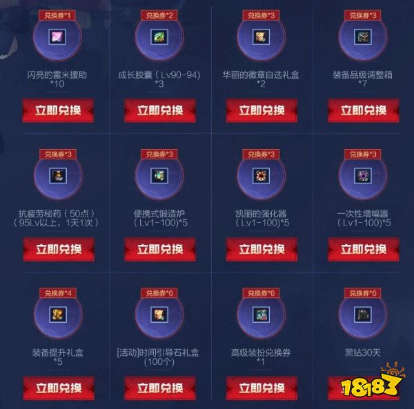 活动期间:通过消耗对应的兑换券即可进行兑换,每个道具单Q限20次,限量的奖励,先到先得