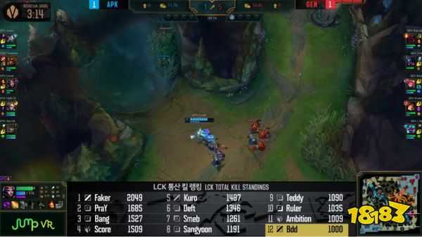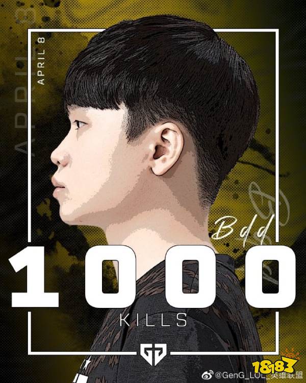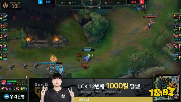 在今天进行的LCK春季赛GEN vs APK的第三场比赛中,GEN的中单选手Bdd使用佐伊拿到了自己LCK生涯的第1000个击杀,也成为了LCK第12位千杀先生。