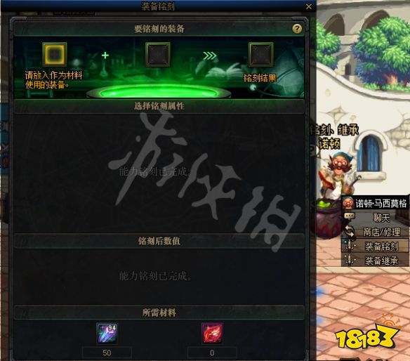 同时,诺顿还具备装备打造的功能,一是装备铭刻,花费50个堇青石,至少1个铭刻之石,可以将95级史诗装备的打造,刻印到100级对应部位的神器,传说,史诗装备上。