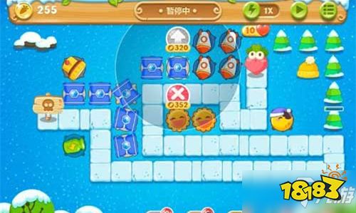 2、清理掉那棵绿树之后,在原地放置一座冰锥塔,冰锥塔能够同时攻击两个方向,可以清除怪物的同时清除道具。
