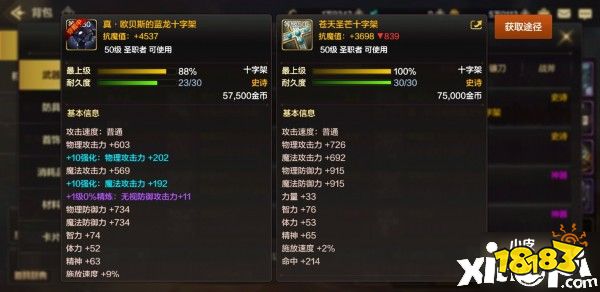 综合来说真・欧贝斯的蓝龙十字架比苍天圣芒更好。详情请看下图所示