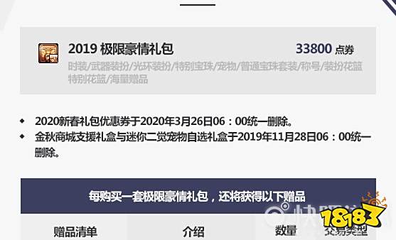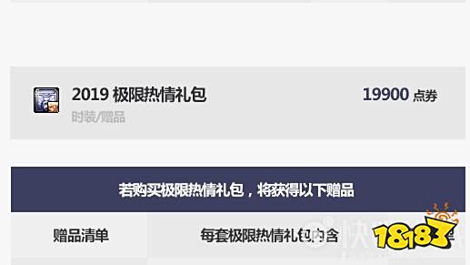 2019极限热情礼包的价格为19900点券,除了礼包内的赠品外,还可以获得复活币、雷米的援助、魔力果汁、达人之契约、霸王之契约等道具。