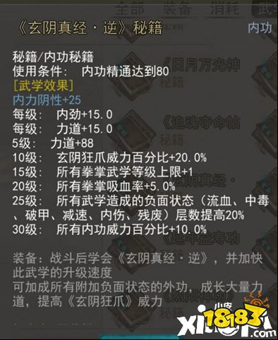 玄阴真经和玄阴真经·逆可以加成负面状态层数,吸星吞日大法保证真气量,日月宝典加玄阴真经叠“阴人3 级”