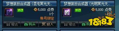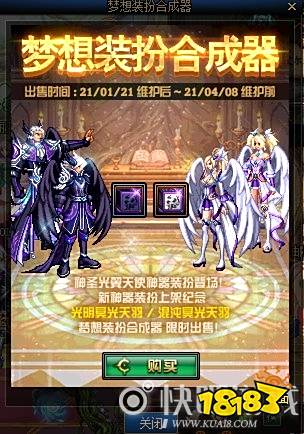 本次上线的梦想装扮合成器是冥光天羽套的合成器。每8个高级装扮可以100%合成1件指定部位的冥光天羽装扮。