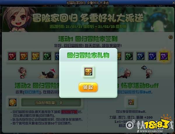 玩家每天在线120分钟即可领取当日的站街奖励,同时计入累积次数。累积领取120分钟奖励达到20次即可领取1本远古的黄金增幅书。