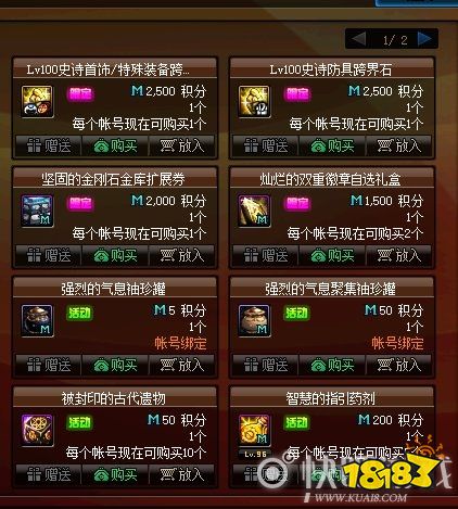 跨界石共有2个,分别是首饰/特殊装备跨界石和防具跨界石,每个需要2500积分才可以兑换。灿烂的双重徽章是1500积分。积分是购买2021春节礼包和通关推荐地下城获得。
