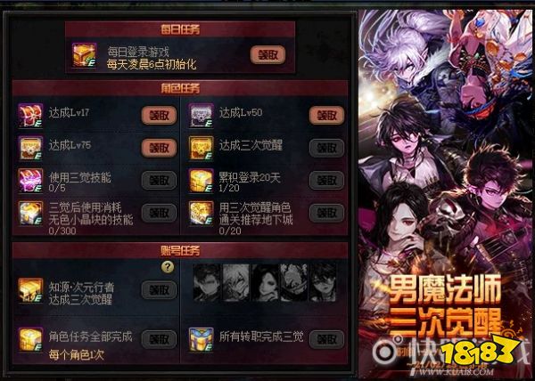 玩家使用男魔法师角色进行升级时,达到相应等级即可领取奖励。完成活动中的各种指定任务后,即可领取对应任务的奖励。