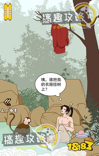 在树枝上拿到弓箭,并将弓箭使用在鹿上。