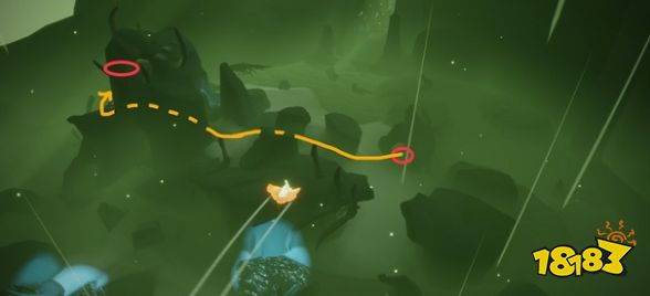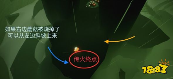 从大花洞穴中开始传火,沿着四龙图中间护送,终点在大花楼梯平台上,可以通过花瓣爬上去。